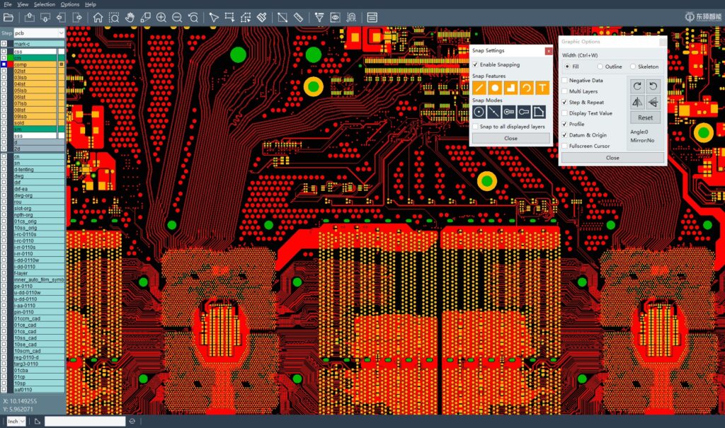 OpenCAM是由無錫東領智能科技股份有限公司開發(fā)的一款輕量級PCB CAM圖形查看器。基于C++開發(fā),具有超高的圖形顯示效率,完全支持ODB++8.1格式。